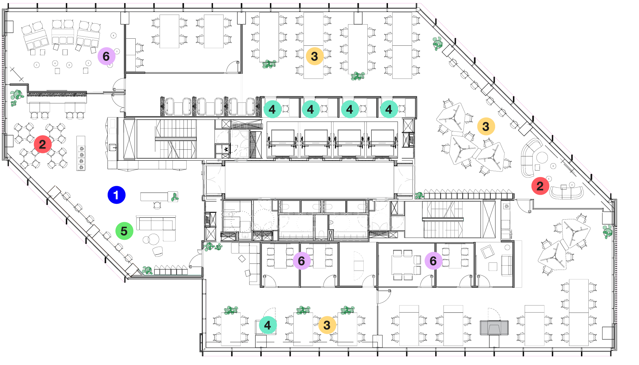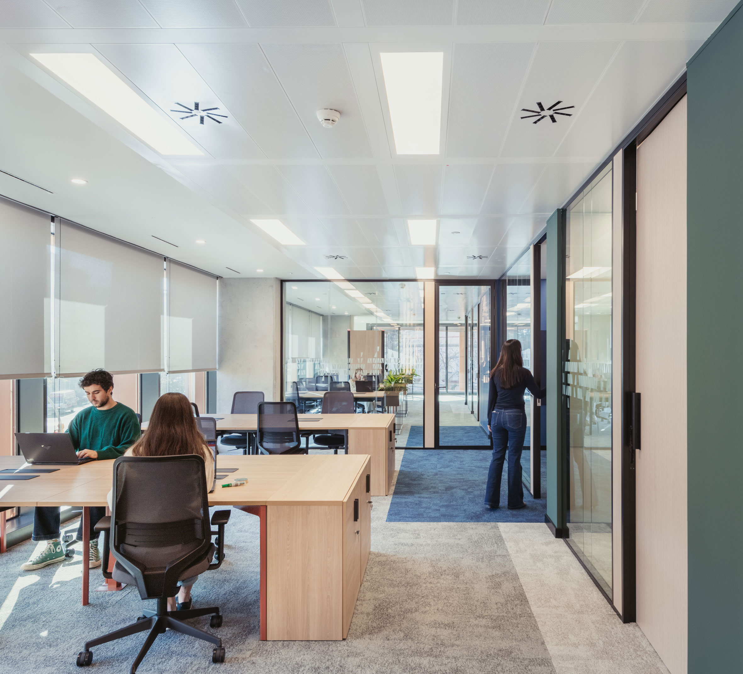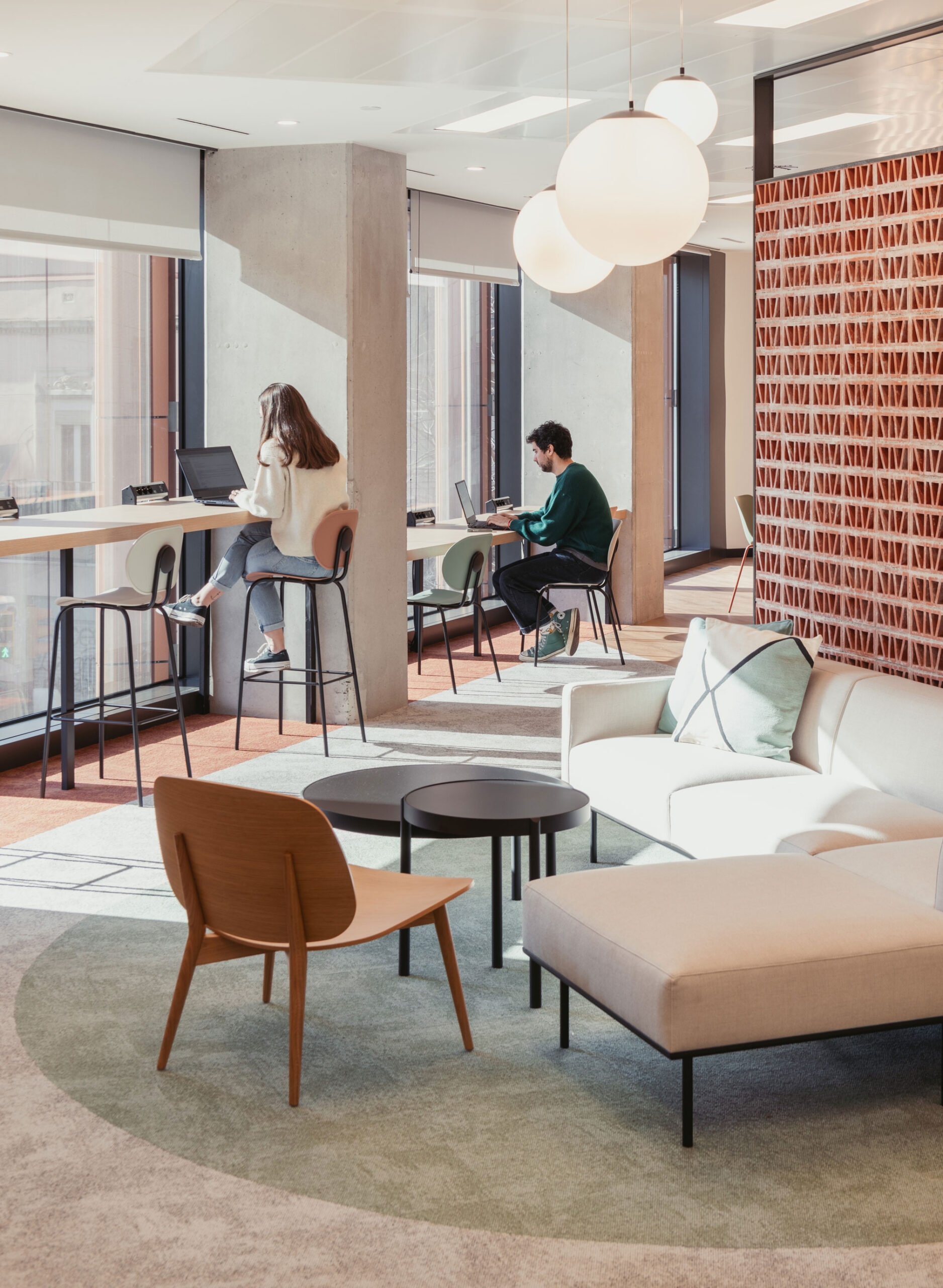 Diferentes modalidades de trabajo (flex, hot desking, informal meeting, etc.).